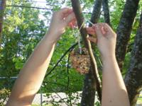 ...The Pine Cone Bird Feeder is fun to make. Not only for the kids, but for the "kid at heart." To Make the Pine Cone Feeder: You will need: Pine Cones Bowls * Make sure bowls are big enough for pine cones to lay down. Peanut Butter Plastic Knife String or Ribbon Scissors Bird Seed